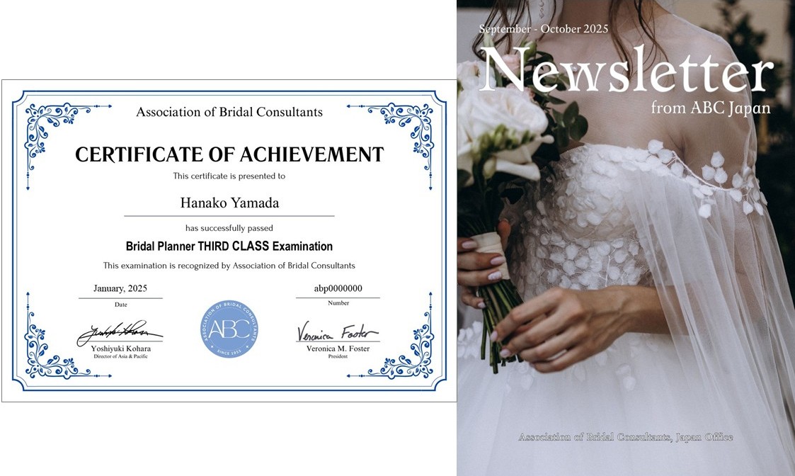 ABC協会認定ブライダルプランナー検定3級合格おめでとうございます